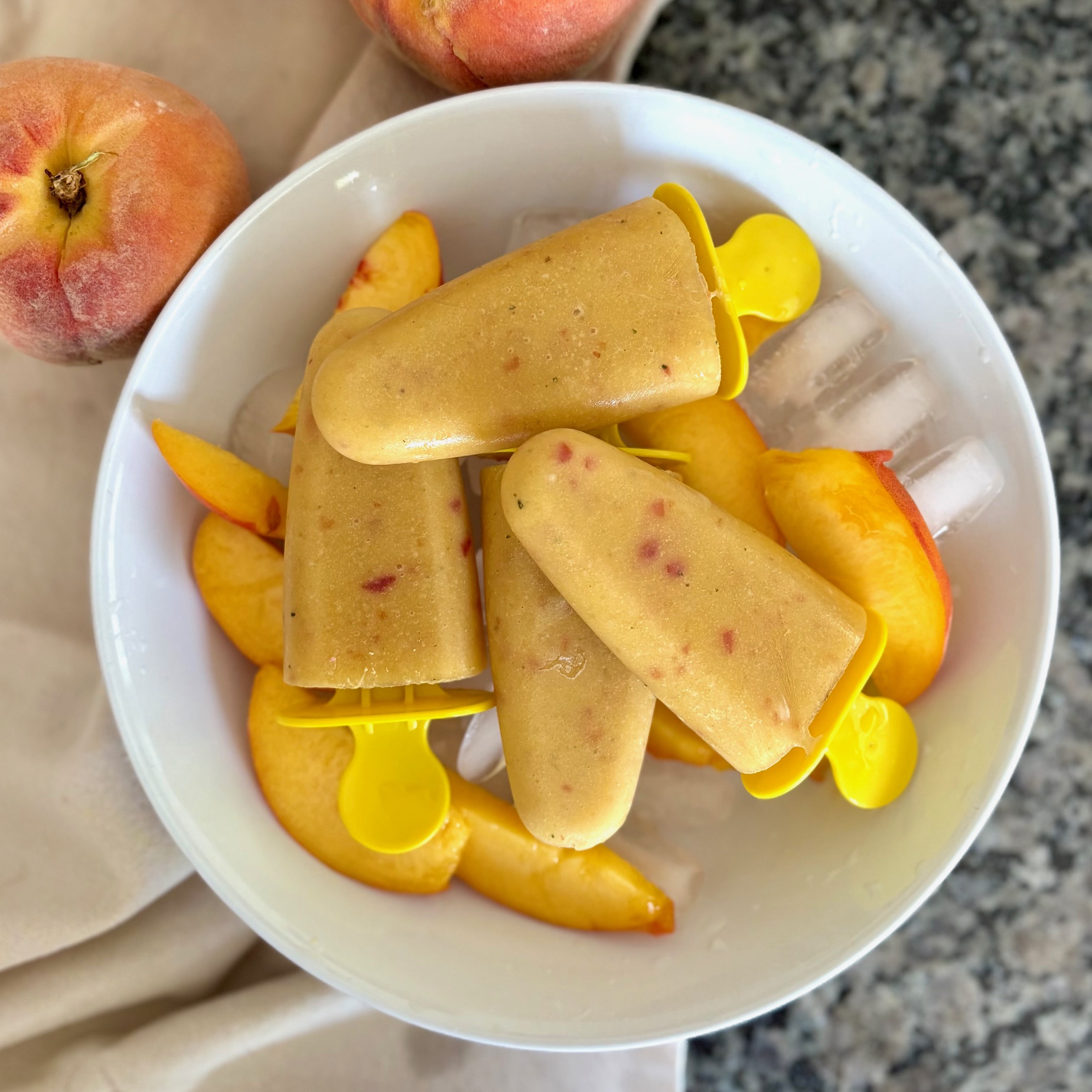 These homemade popsicles are the perfect summer treat when peaches are in season - they're naturally sweet from the peaches, they have a creamy yogurt base and are great for everyone, grown up or kid!